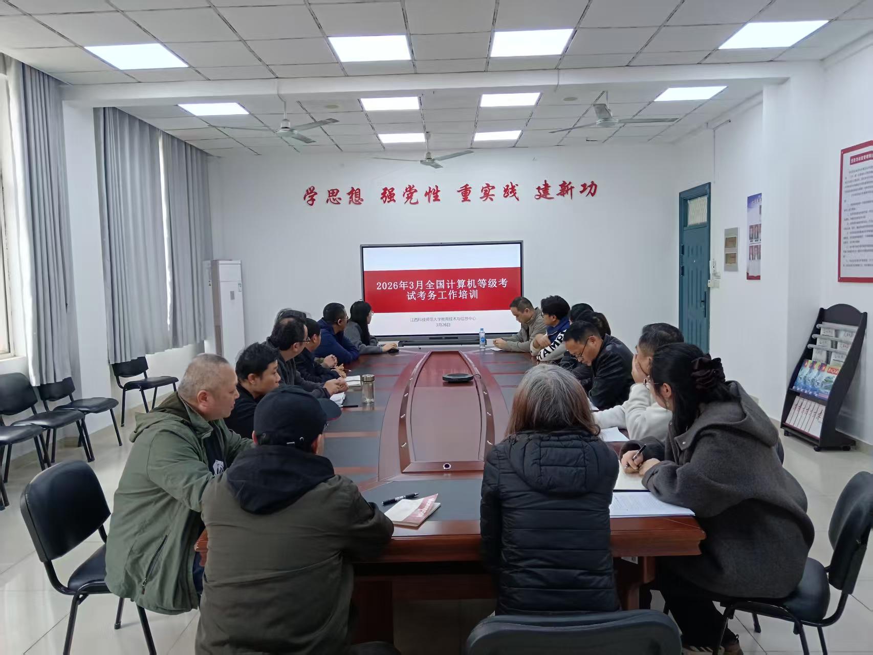 第77次全国计算机等级考试将于2026年3月28日举行,江西科技师范大学为承办考点之一。为保障考试工作顺利开展,教育技术与信息中心于3月26日下午组织召开考务工作培训会议,全体工作人员参加。