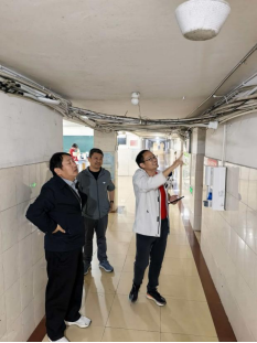 检查组一行先后走访两个校区,走进多栋学生宿舍,重点对宿舍内网络弱电箱、校园网接入设备、楼道管线布设、线路规范等情况进行了细致排查。检查过程中,中心领导与相关负责同志逐一查看网络设备运行状态,对线路走向、设备安装规范、安全防护措施等关键环节进行现场核验,详细了解宿舍网络的日常运维情况,并就管线老化、布线不规范等潜在风险提出整改要求。同时,检查组深入学生宿舍,与学生亲切交流,现场查看学生用网环境,耐心解答学生在校园网使用过程中遇到的问题,引导学生规范、安全使用网络。
